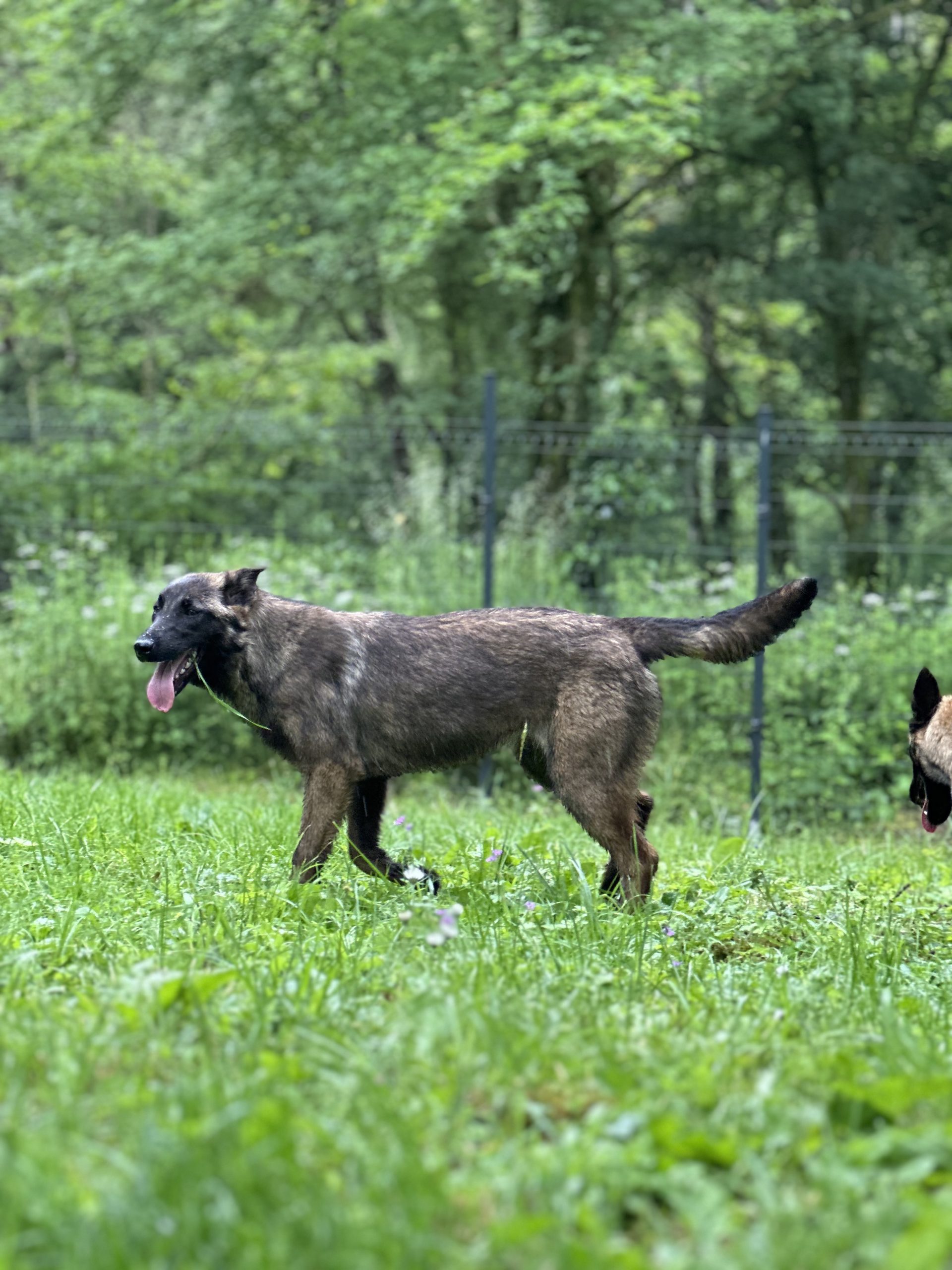 Toutes nos lices vivent sur notre élevage, elles sont sorties tous les jours dans les bois, en meute malinois et golden retriever confondu.